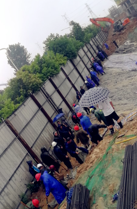 汛情刻不容緩!第七黨支部緊密關(guān)注派河及周邊道路水位情況,做好隱患及時(shí)排查、險(xiǎn)情時(shí)時(shí)監(jiān)控,確保工作落實(shí)到位,力度保障到位。第七黨支部強(qiáng)化溝通協(xié)調(diào),加強(qiáng)組織領(lǐng)導(dǎo),合肥城建總經(jīng)理陳奇梅同志、副總經(jīng)理丁焰同志與質(zhì)量安全部同事們奔赴工地現(xiàn)場(chǎng),深入一線指導(dǎo)工作。七支部認(rèn)真落實(shí)24小時(shí)值班制,團(tuán)結(jié)一致、頑強(qiáng)奮戰(zhàn),用一包包沙袋、一次次搬運(yùn)筑起了防汛堡壘。
