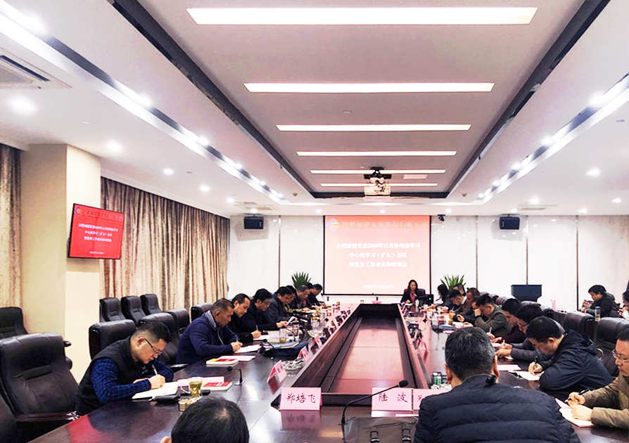 為進一步加強黨的十九屆五中全會精神學(xué)習(xí),掌握國家十四五規(guī)劃核心內(nèi)容,全面了解公司基層黨建工作開展情況,切實抓好公司黨務(wù)工作者知識和技能培訓(xùn),2020年11月26日下午,合肥城建召開黨委理論學(xué)習(xí)中心組(擴大)會議暨黨務(wù)工作者實務(wù)培訓(xùn)會。會議由公司黨委書記、董事長王曉毅主持,公司黨委班子成員、高管層、各黨支部書記及委員參加會議,市國資委四級調(diào)研員、組織宣教處處長尹玲應(yīng)邀出席并作專題授課。
