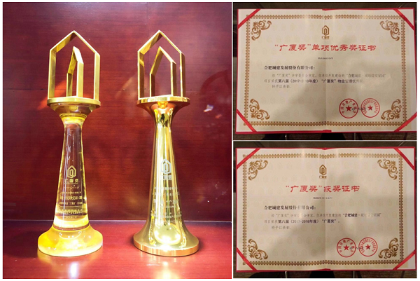 近日,由中國房地產(chǎn)業(yè)協(xié)會(huì)、住房和城鄉(xiāng)建設(shè)部住宅產(chǎn)業(yè)化促進(jìn)中心共同舉辦的第八屆(2017-2018年度)“廣廈獎(jiǎng)”頒獎(jiǎng)典禮在北京隆重召開。經(jīng)過廣廈獎(jiǎng)評委嚴(yán)格的評審,最終合肥城建·琥珀瑞安家園項(xiàng)目脫穎而出,斬獲“廣廈獎(jiǎng)”及“廣廈獎(jiǎng)”物業(yè)管理優(yōu)秀獎(jiǎng)兩項(xiàng)殊榮,這是繼2008年合肥城建·世紀(jì)陽光花園項(xiàng)目榮獲廣廈獎(jiǎng)之后,合肥城建再度獲此殊榮。