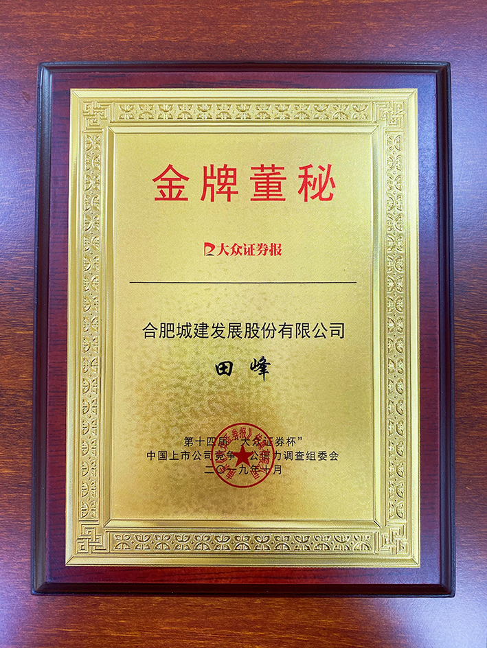 自2005年開始的“中國(guó)上市公司競(jìng)爭(zhēng)力公信力”調(diào)查評(píng)選活動(dòng),至今已連續(xù)成功舉辦十三屆,活動(dòng)用投資者集中的聲音和智慧記錄了上市公司在證券市場(chǎng)的表現(xiàn),推動(dòng)了上市公司的價(jià)值發(fā)現(xiàn)和誠(chéng)信建設(shè),在中國(guó)資本市場(chǎng)引起專家學(xué)者、投資機(jī)構(gòu)、上市公司以及眾多普通投資者的關(guān)注。論壇現(xiàn)場(chǎng)發(fā)布了各項(xiàng)評(píng)選結(jié)果,合肥城建榮獲“最佳中小板上市公司”殊榮。與此同時(shí),公司董事會(huì)秘書田峰同志榮獲“投資者關(guān)系金牌董秘”稱號(hào)。