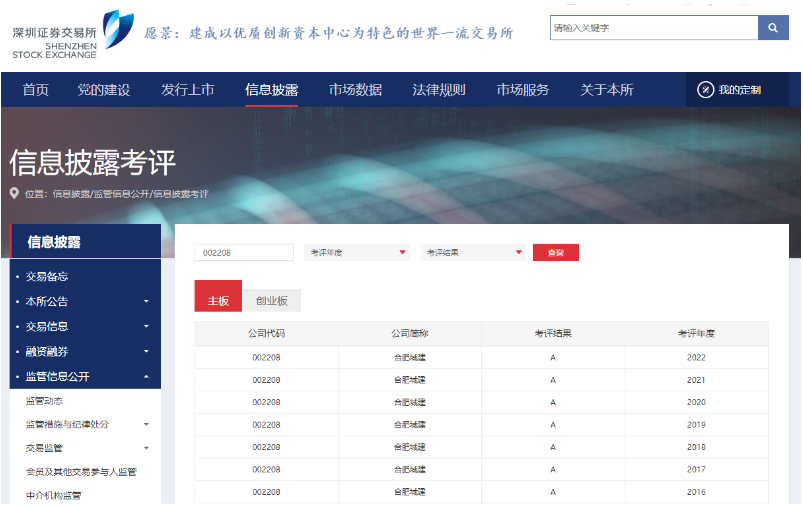 合肥城建獲評(píng)深圳證券交易所主板上市 公司2022年度信息披露考核A級(jí)
