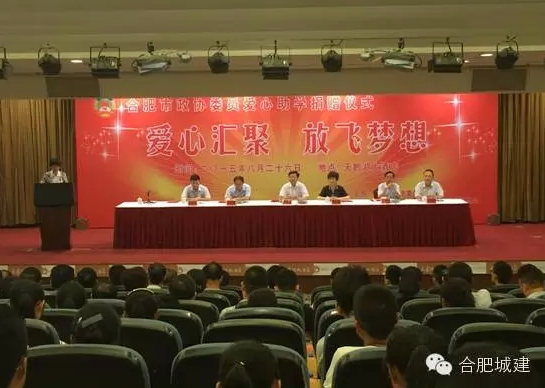 一顆愛心,一次行動(dòng),一個(gè)希望,一份感動(dòng),共同創(chuàng)造美好未來(lái)! 8月26日上午,由合肥市政協(xié)主辦的“愛心匯聚放飛夢(mèng)想”2015捐資助學(xué)活動(dòng),在合肥天鵝湖大酒店圓滿舉行。合肥市主要領(lǐng)導(dǎo)、政協(xié)委員代表、受捐助學(xué)生和捐贈(zèng)代表參加了捐贈(zèng)儀式。合肥城建作為活動(dòng)的捐贈(zèng)方之一,也受邀參加此次捐贈(zèng)儀式活動(dòng)。...