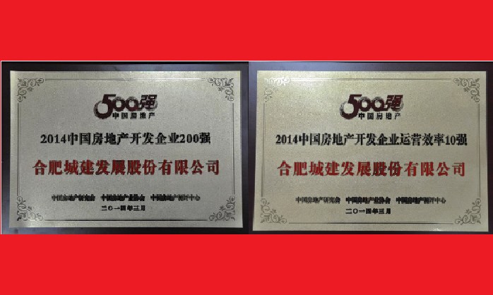 合肥城建喜獲“2014中國房地產開發(fā)企業(yè)200強”、“中國房地產開發(fā)企業(yè)運營效率10強”